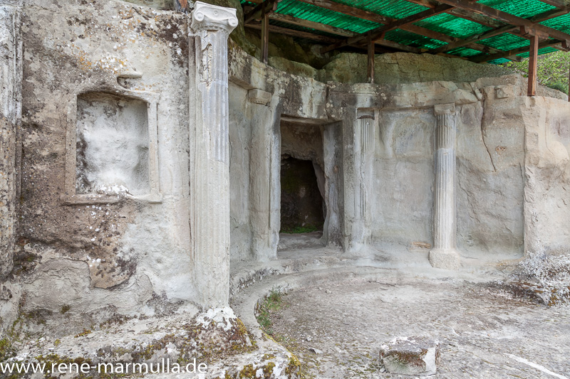 … nach ca.einer Stunde wollten wir aufbrechen, aber vor uns stand ein Einheimischer, der uns ein wenig herumführen wollte. Ein wenig überrascht zögerten wir erst, erfuhren dann aber, dass er hier mal als Ausgräber unter einem italienischen Professor gearbeitet hatte. Er sprach einfaches Italienisch. Womit Ron gut umgehen konnte, aber auch ich verstand große Teile. Die Siedlung auf dem Hügel ist helenistischen Ursprungs. Die Gräber gehören zu Fürsten und Königen, die teilweise mit Alexander dem Großen in den Krieg gezogen waren… Vor allem zeigte uns Kudret Baci auch Gräber, die wir irgendwie übersehen hatten…